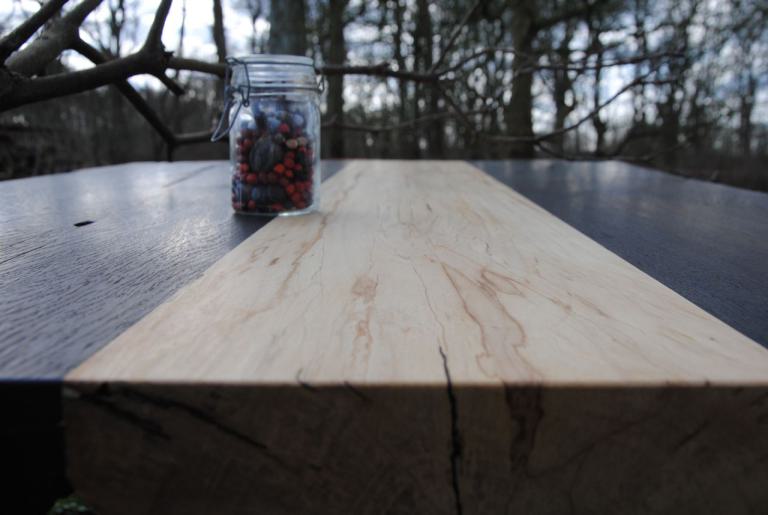 Mesa de comedor de auténtico roble de los pantanos del año 971 a.C. (edad exacta comprobada por peritaje dendrocronológico). Pieza central de álamo.