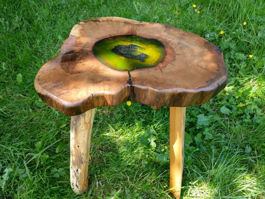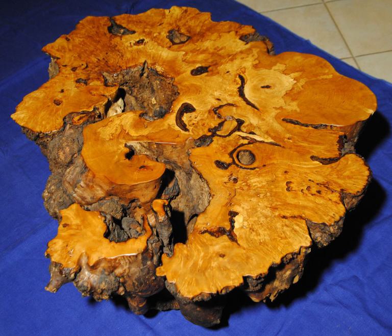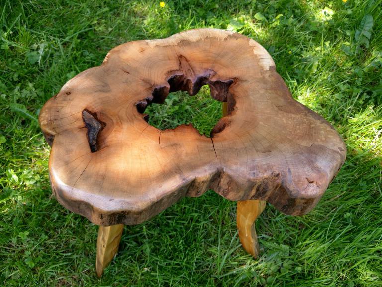 Acogedores taburetes fabricados con discos de troncos especialmente bellos de diversas especies de árboles - robinia, peral, olmo, raíz de cerezo - ...o macizos de la raíz de un poderoso aliso o del tronco ahuecado de un viejo peral